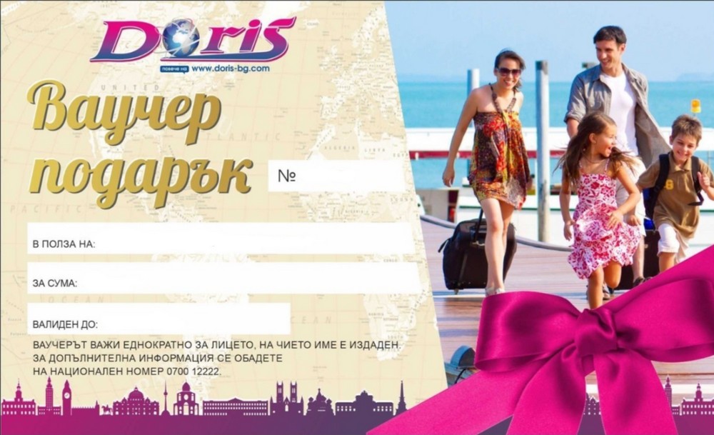 ● Подаръчният ваучер на Дорис е не просто подарък, а ключ към удивителни приключения, незабравими мигове и вълнуващи пътувания до най-красивите кътчета по света!